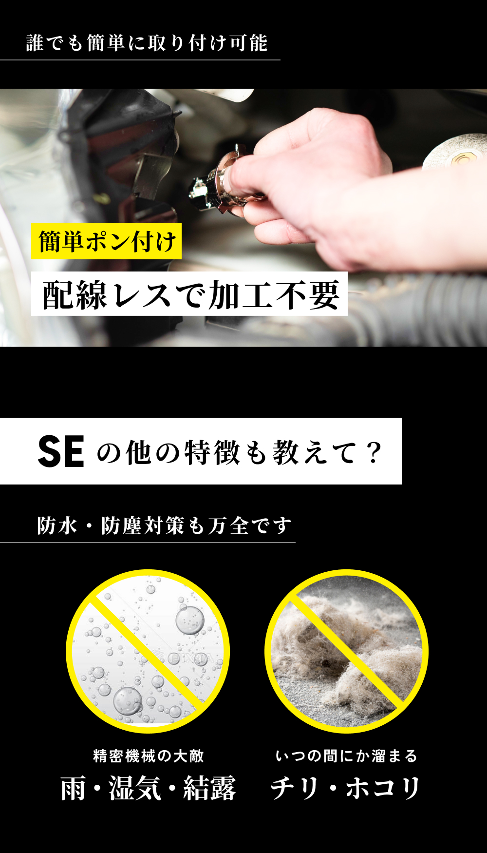 配線加工が不要な設計なので、クルマいじりが初めての方でも、手軽に取り付け可能です。