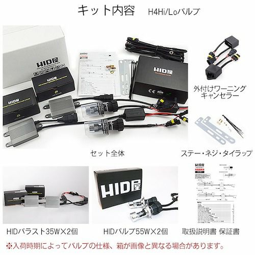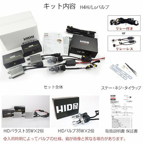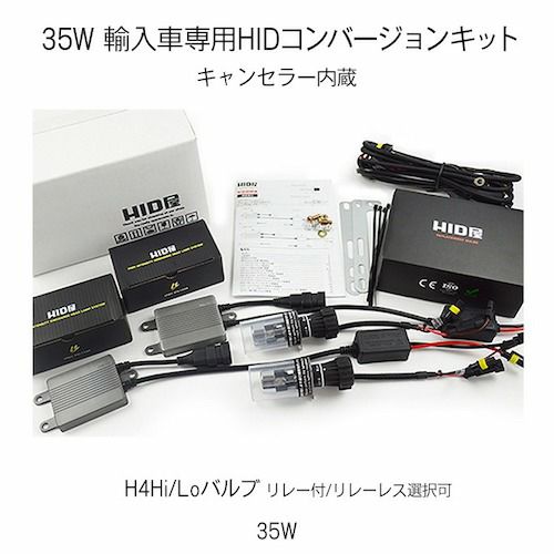 HIDキット 輸入車用 35W スタンダードタイプ H4Hi/Lo リレー付 リレーレス H1 H3 H3C H7 H8 H10 H11 H16 HB3 HB4 3000k 4300k 6000k 8000k 12000k 外付ワーニングキャンセラー付 ワーニングキャンセラー内蔵バラスト