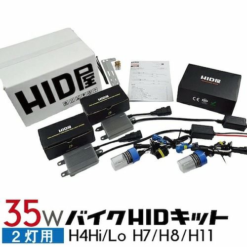 バイク2灯用 HIDキット スタンダードタイプ H4Hi/Lo(リレー付/リレーレス) H7 H8 H11 選べる色温度3000k-12000k 35W 車検対応 一年保証