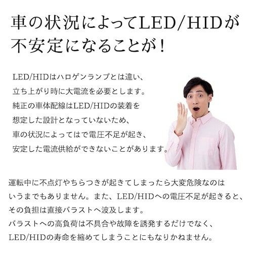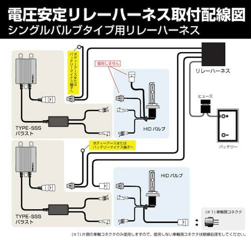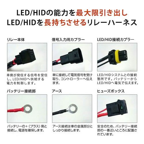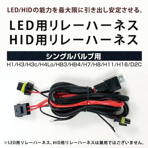 リレーハーネス LED用 HID用 シングルバルブ用 コントローラー内蔵 H1・H3・H3C・H7・H8・H9・H11・H16・HB3・HB4・D2C用 電圧安定リレーハーネス 電力不足・チラつき解消