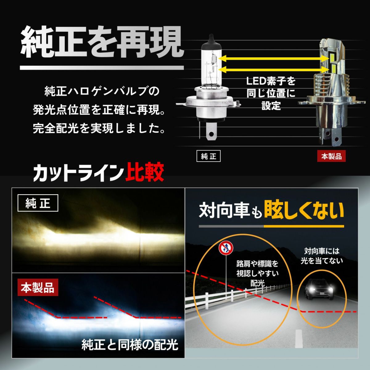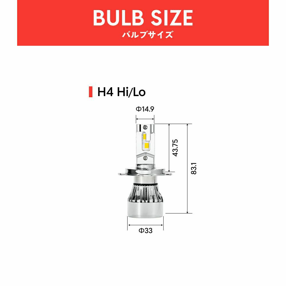 HID屋 H4 Hi/Lo LED ヘッドライト Sシリーズ 21600cd(カンデラ) 純正サイズ 12V 2本1セット H8 H11 H16 HB3 HB4