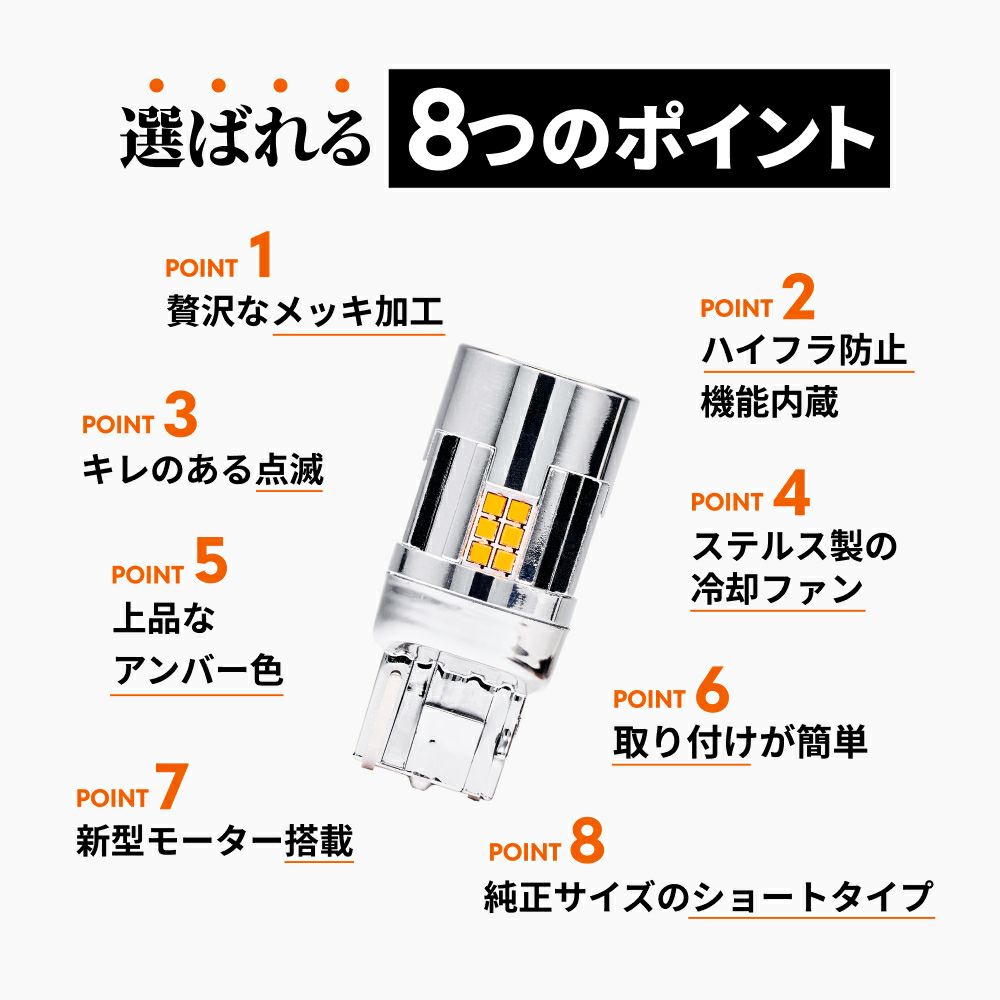 他の画像を見る HID屋 T20 LED ウインカー アンバー 3000lm キレのある発光で視認性アップ!ハイフラ防止抵抗内蔵 LEDウインカー(ショートタイプ)T20兼用ピンチ部違い / S25 150° ピン角違い 車検対応・2年保証 送料無料 定価 ¥ 7,480 のところ 当店特別価格 ¥ 7,480 税込 カートに入れる お気に入りに登録する