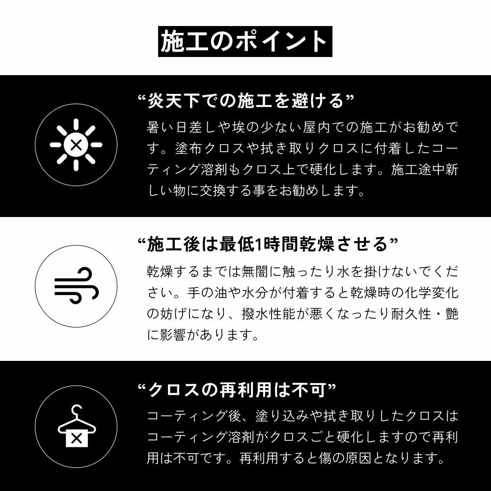 他の画像を見る 有機質を多く含んだ従来のガラスコーティングと異なり、有機質と無機質のハイブリッドコーティング剤であるため、無機質成分の雨染みや水シミを防ぎやすい ガラスコーティング 25ml 下地処理コーティング剤付き 失敗させない自分で出来るガラスコーティングマイクロファイバー タオル 2枚付き 送料無料 定価 ¥ 10,980 のところ 当店特別価格 ¥ 10,980 税込 カートに入れる お気に入りに登録する