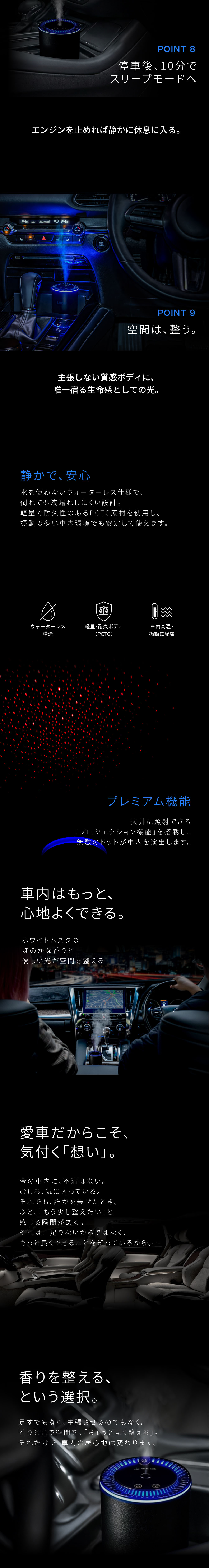 洗練されたデザインと香りの上質な車用ディフューザー。