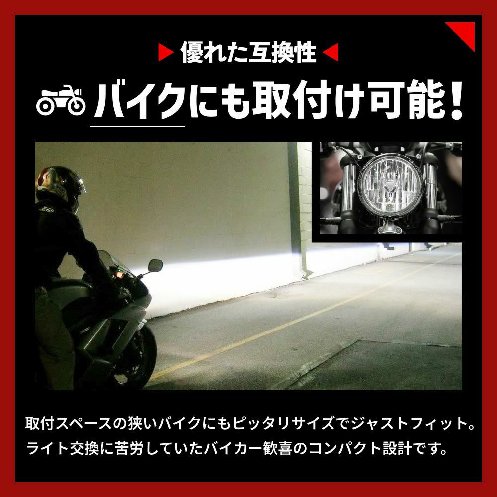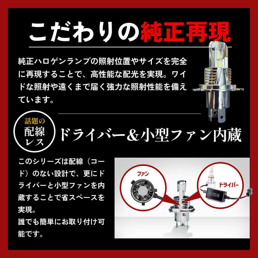 HID屋 バルブ交換のみで簡単取り付け Sシリーズ バイク用 H4 Hi/Lo LEDバルブ コードレス LED ヘッドライト 配線レス 21600cd(カンデラ) 爆光 車検対応 純正サイズ 一体型 ファン付き バルブ ポン付け 6500k ハイビーム