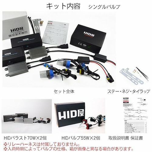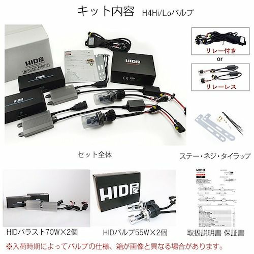 70W HIDキット スタンダードタイプ H4Hi/Lo(リレー付/リレーレス) H1/H3/H3C/H7/H8/H10/H11/H16/HB3/HB4 4300k/6000k/8000k