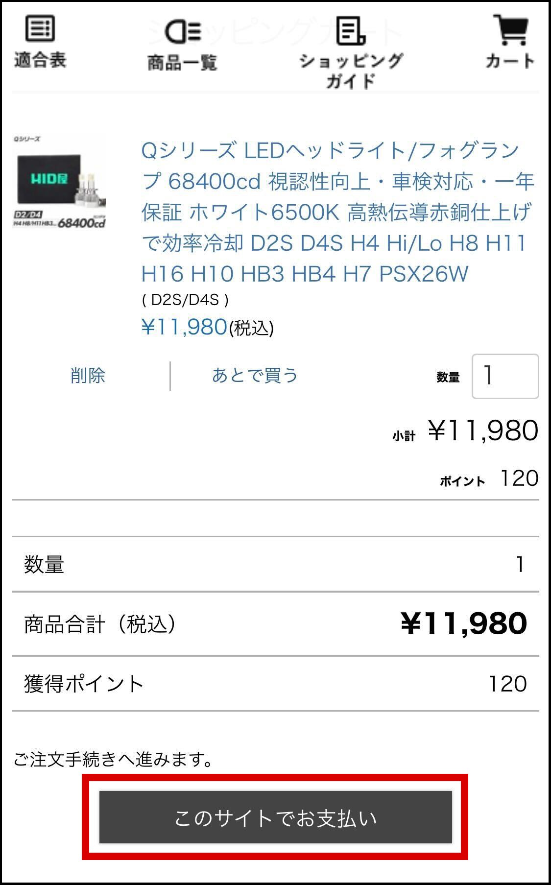 ご購入したい商品をカートに入れてください。※「HID屋 公式ショップ」の商品が対象となります。