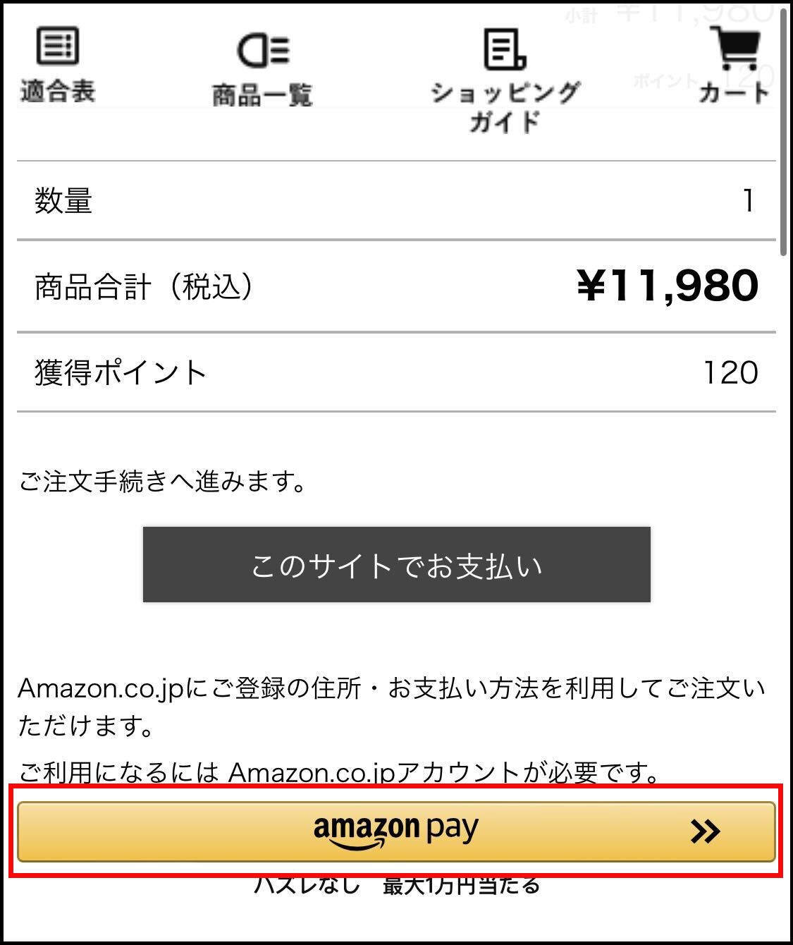 カートにご希望の商品が入っていることを確認してから「このサイトでお支払い」ボタンを押してください。