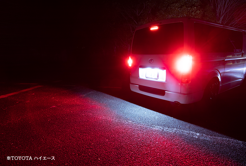 後退するのを後ろから来る車等に知らせるために車体後部で点灯するランプ。バックギアに入れることにより点灯します。