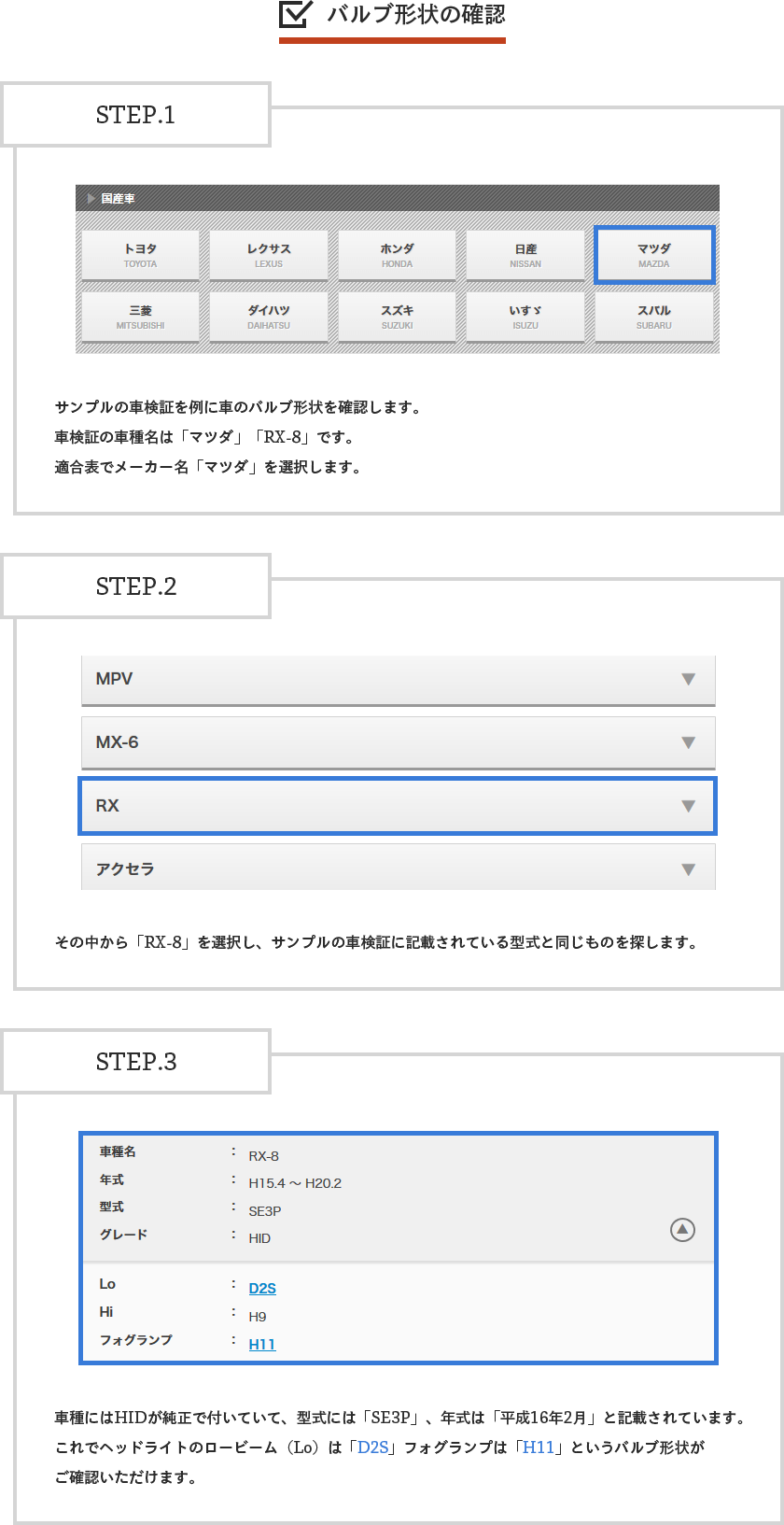 2. 愛車に取付可能なライトの調べ方