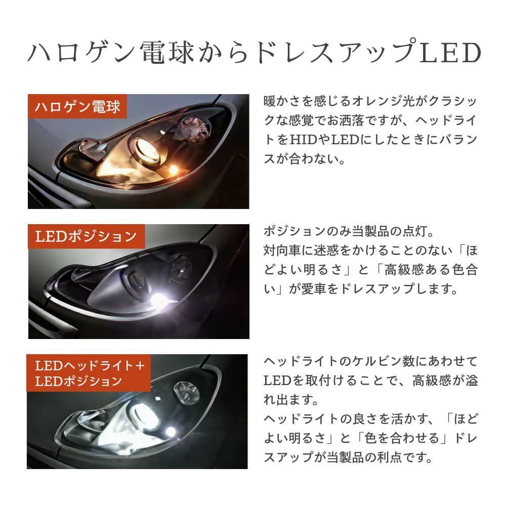 他の画像を見る ポジションランプ Peta-SMD LED ホワイト6500K/アクアホワイト8000K 400lm T10 広拡散レンズ9連で明るさ抜群 車検対応・2年保証 T10 定価 ¥ 1,900 のところ 当店特別価格 ¥ 1,900 税込 カートに入れる お気に入りに登録する
