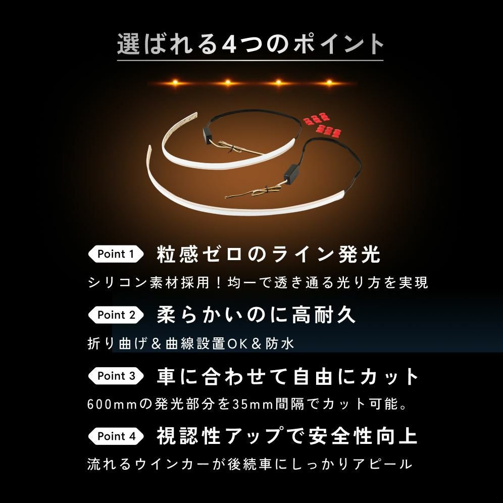 他の画像を見る HID屋 LED シーケンシャル ウインカー 流れるウインカー 2色切替 デイライトとしても使える LEDテープ 60cm 2本セット シリコン 防水 車用 ホワイト/アンバー 流水 カスタム ドレスアップ テープ式 定価 ¥ 6,980 のところ 当店特別価格 ¥ 5,780 税込 カートに入れる お気に入りに登録する